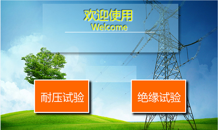 1、按照主界面(如图3)选择耐压试验。按接线原理图连接好引线,并将变压器和控制箱可靠接地,控制箱的接地端必须接到变压器的接地端,请勿直接接地线,防止控制箱接地而变压器没有良好接地。 2、试验前,检查各部位的接线是否接触良好,并检查控制箱的输入电压是否为220VAC; 3、打开电源开关,接通电源,显示屏显示出主菜单如图2, (1)编号:作为测试打印、保存查询的标识; (2)测试时间:根据实际测试进行设置 (3)升压变比:根据外接变压器可更改,变比值为仪表电压:输出电压, 如仪表电压100V,输出电压100KV,变比就设为1:1000; (4)保护电流:控制箱输出的电流保护上限值; (5)设置电压:即为实验电压,最高100KV。 (6)自动测试:开始实验按键。 (8)厂家设置:有密码保护,厂家人员调试电压电流用。 4、设置好参数后,触摸启动按键,再次确认后即开始测试,测试过程中按下急停按键会停止测试,听到交流接触器跳开切断电源。 5、试验完毕后,电压会自动降至零位,然后断开交流接触器,此时可选择打印测试结果或返回主菜单,如需解开试验引线请关闭电源。