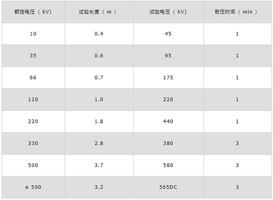 将被试绝缘杆平铺在U型卡槽内,电极距离按表的规定选择。按要求将高压线和地线接到指定的接线端上,确认无误后方可进行升压。根据绝缘梯的电压等级升到上表规定的试验电压值,在规定的时间内试品没有出现击穿、闪络现象,可以判断试品合格。如试品电压等级较高时(超过330KV),需要将电极支架升高,两人同时将两边的支柱升到最高位置,然后逆时针转动下面的绝缘杆即可锁紧。