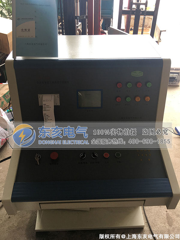 本试验机由立式双缸液压台、安全帽试验台和包括微机测控系统的控制柜组成,具备手动操作系统和自动操作系统。在自动操作系统中,通过键盘和人机对话可直接选择安全工器具名称进行预防性试验,也可自行设定参数进行其它材质的力学性能试验,所有的试验参数和操作提示、工作图线均显示在液晶屏上,并能打印符合《规程》要求的试验报告。